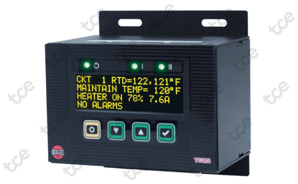 The Thermon TraceNet TCM2 is a microprocessor based temperature control and monitoring module developed specifically for heat tracing applications. The unit provides control and monitoring capabilities via digital information display for one or two heat tracing circuits with input from up to two RTDs per circuit.