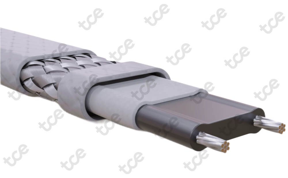 The heat output of the FLX cables varies in response to the surrounding conditions along the entire length of a circuit. Whenever the heat loss of the insulated pipe, tank or equipment increases (as ambient temperature drops), the heat output of the cable increases. Conversely, when the heat loss decreases (as the ambient temperature rises or product flows), the cable reacts by reducing its heat output. FLX heat tracing cables are available with polyolefin (OJ) overjacket suitable for mild inorganic solutions.